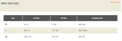 We offer size guides for Men Ladies and Children in UK EU and US shoe and sock sizes Mens Sock. Socks Size US Womens Shoe Size US Mens Shoe Size. Mens Long Sock - Leg Length.